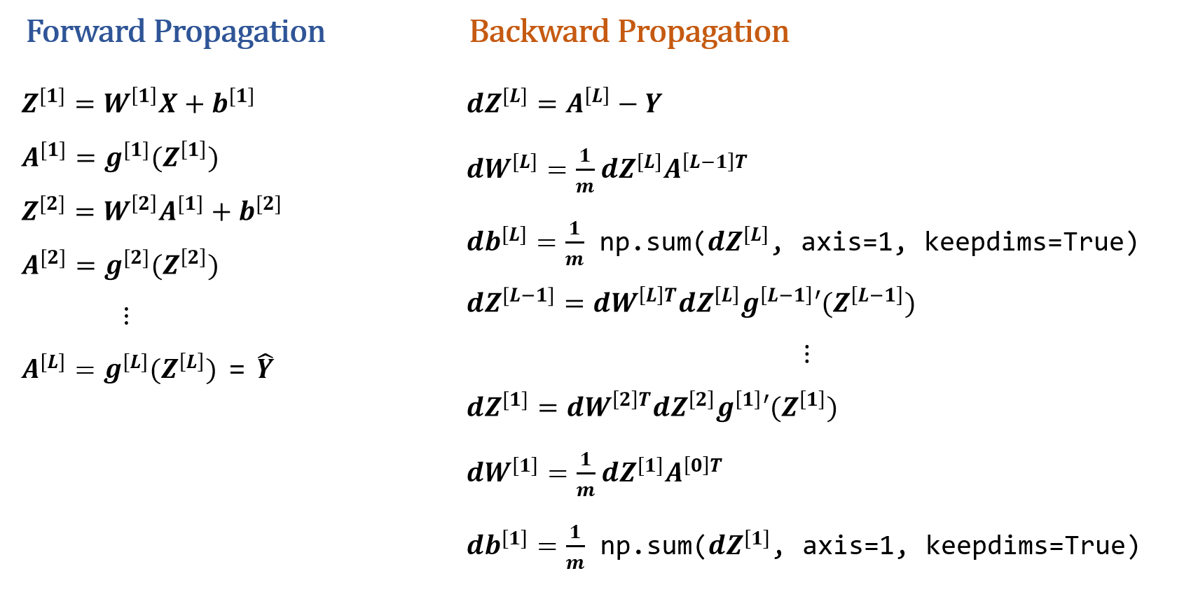 Forward Propagation과 Backward Propagation은 다음과 같다.